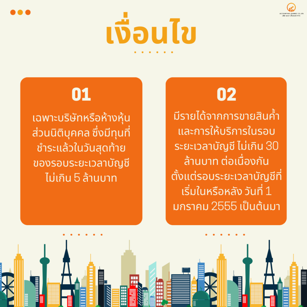 - มีรายได้จากการขายสินค้าและการให้บริการในรอบระยะเวลาบัญชี ไม่เกิน 30 ล้านบาทต่อเนื่องกัน