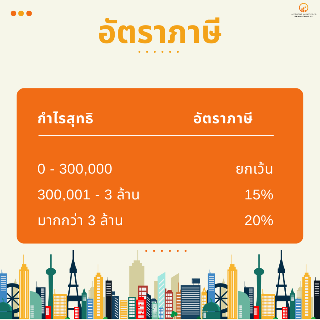 ธุรกิจ SME จะเสียภาษีในอัตราที่ถูกกว่าธุรกิจทั่วไป คือ ธุรกิจ SME ที่มีกำไรสุทธิไม่เกิน 300,000 บาท จะได้รับการยกเว้นการเสียภาษี ส่วนธุรกิจ SME ที่มีกำไรสุทธิเกิน 300,000 บาท แต่ไม่เกิน 3,000,000 บาท เสียภาษีที่อัตรา 15% และธุรกิจ SME ที่มีกำไรสุทธิเกิน 3,000,000 บาทขึ้นไป เสียภาษีที่อัตรา 20% ในขณะที่ธุรกิจทั่วไปที่มีขนาดใหญ่กว่าธุรกิจ SME อัตราภาษีที่ต้องเสียจะอยู่ที่ 20% ในทุกๆฐานของกำไรสุทธิ และไม่ได้รับยกเว้นภาษีสำหรับกำไรสุทธิ 300,000 บาทแรกด้วยเช่นกัน